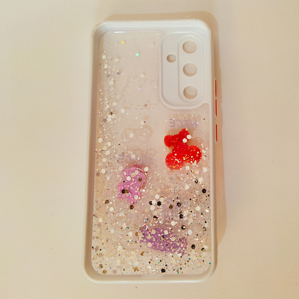 جنس این قاب لاکچری و اکلیلی از با کیفیت ترین متریال ساخته شده تا گوشی موبایل شما را دربرابر ضربات و آسیب های احتمالی محافظت کند. قاب گوشی سامسونگ Galaxy A54 5G طرح عروسکی پاستیلی دور تا دور گوشی را می پوشاند. برش قسمت دوربین و درگاه ها بسیار با دقت انجام شده است.