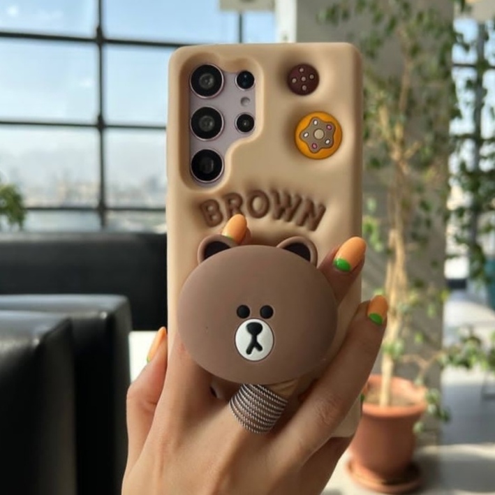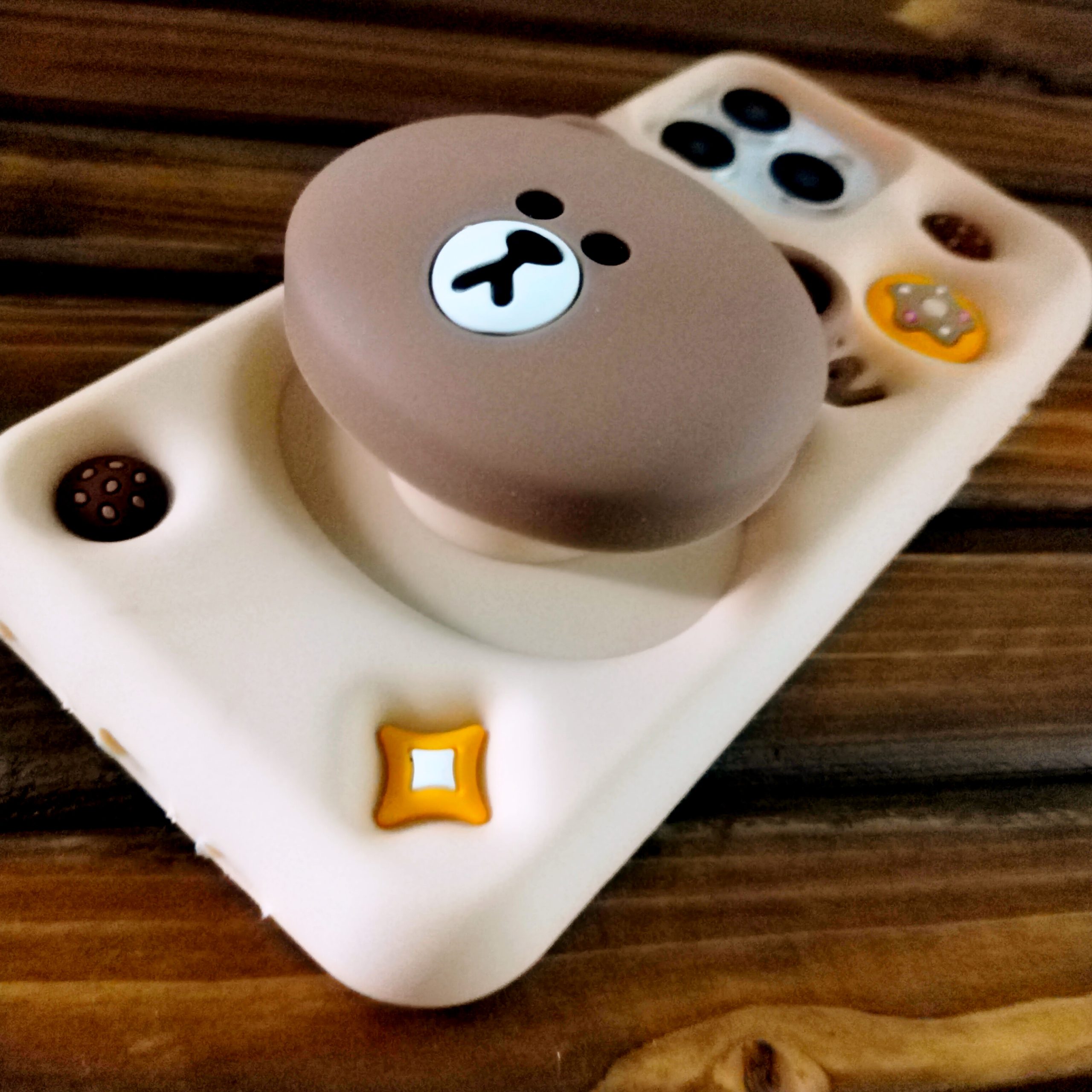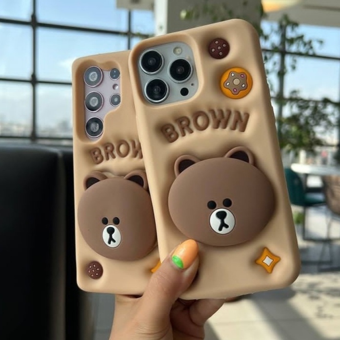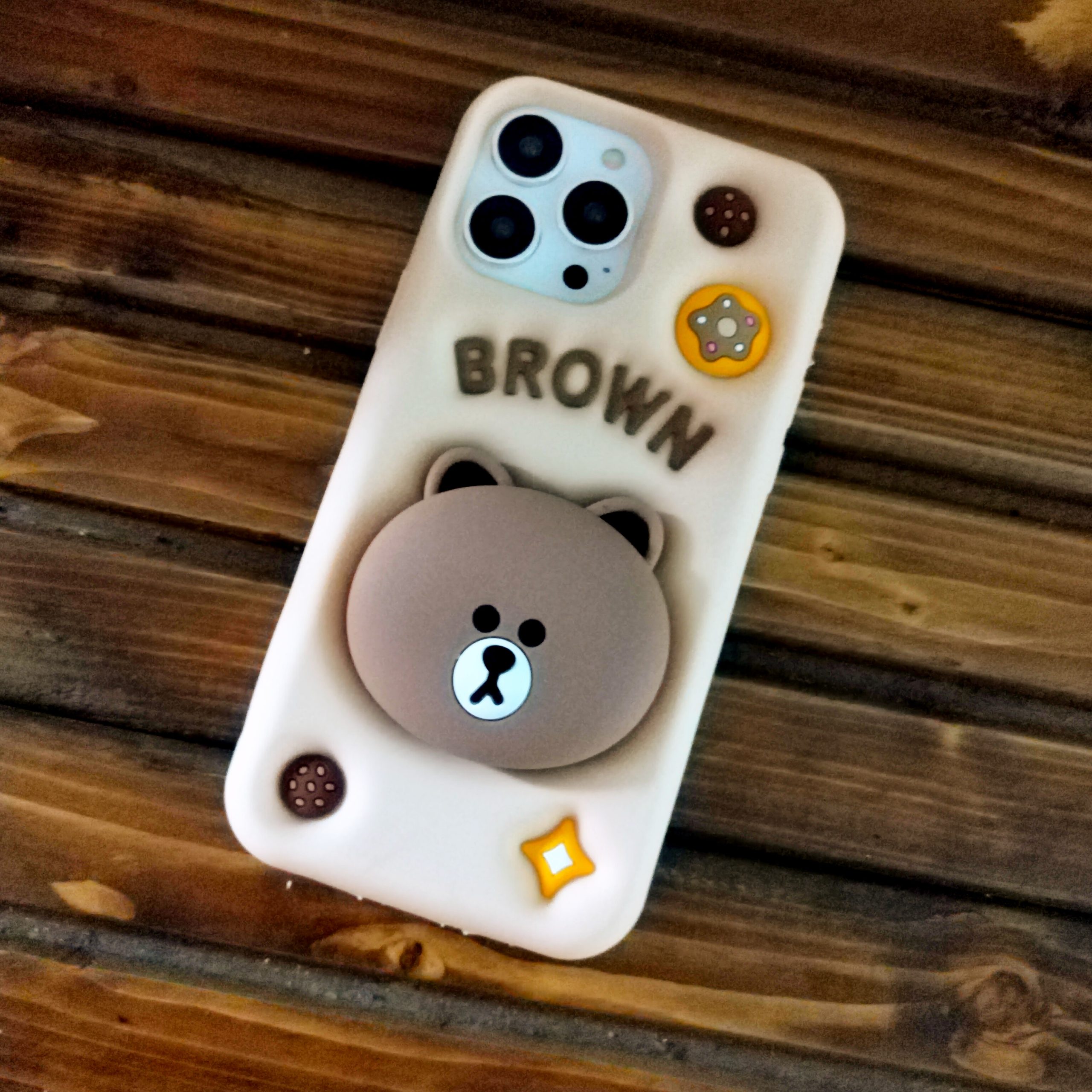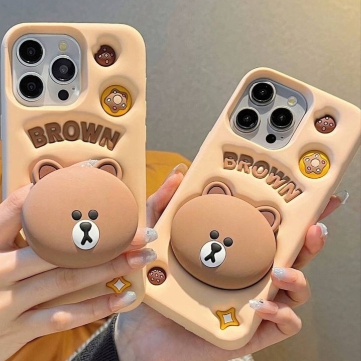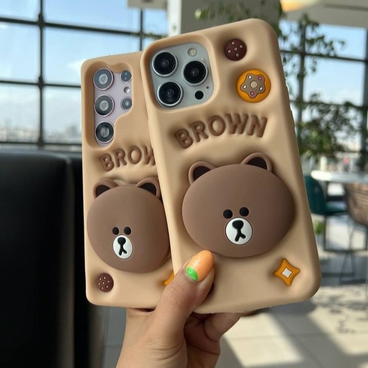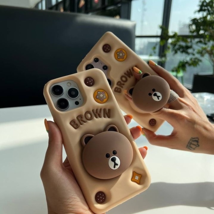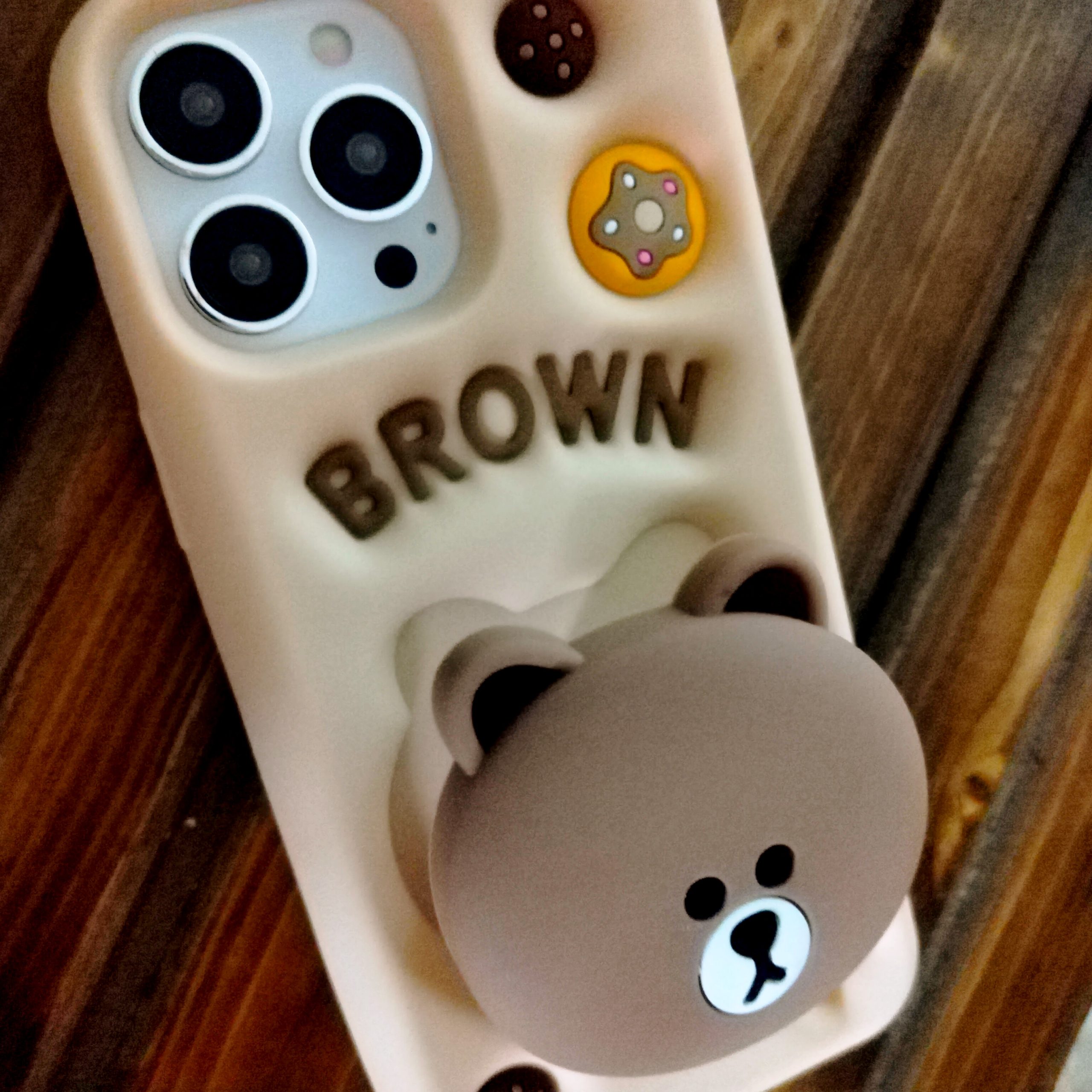 قاب گوشی اپل iPhone 14/15 Pro Max کد 2182 سیلیکونی هولدردار طرح خرس قهوه ای